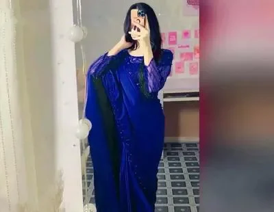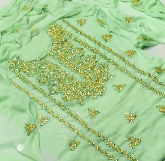 3 Pcs Women?s Chiffon Hand Embroidered Stitched Saree
