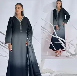Women?s Stitched Shamoz Silk Embroidered Maxi