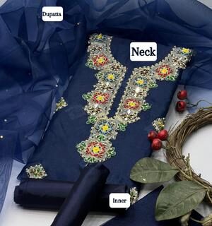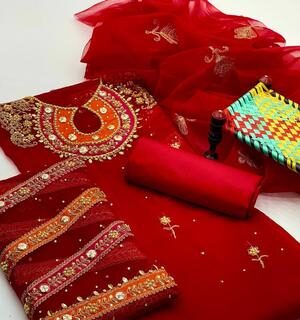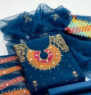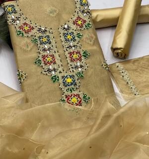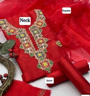 3 Pcs Women’s Unstitched Fancy Organza Cut-work Embroidered Suit