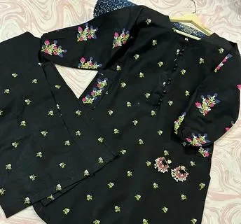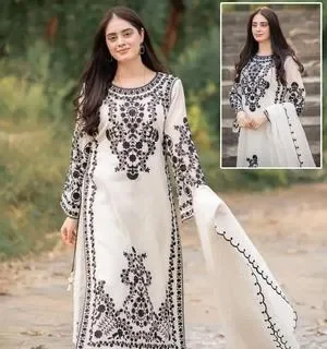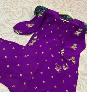2 Pcs Women?s Stitched Linen Embroidered Suit