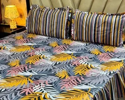3 Pcs Cotton Salonica Frill Double Bedsheet
