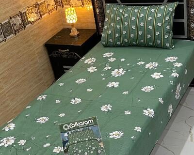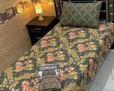 Green Cotton Printed Single Bedsheet Set 4 Pcs