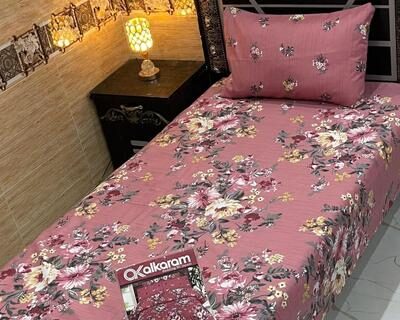 Pink Cotton Floral Single Bedsheet Set 4 Pcs