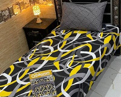 Cotton Printed Single Bedsheet Black Yellow 4Pcs