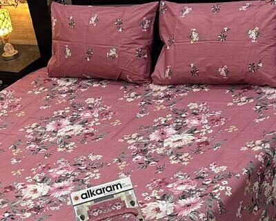Cotton Floral Double Bedsheet Pink 3 Pcs Set