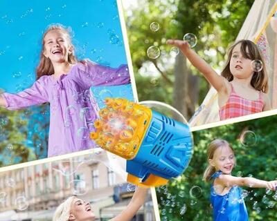 Blue Bubble Blower Gun for Kids 1-10 Years