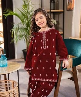 2 Pcs Girl’s Stitched Cotton Embroidered Kurta