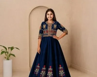 2 Pcs Girl’s Silk Embroidered Maxi & Jacket