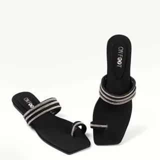 Women Black Rexine Strap Slippers Casual Formal Party Wear