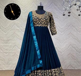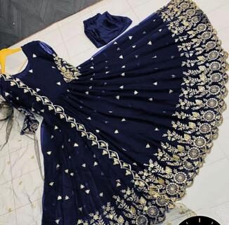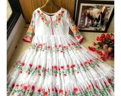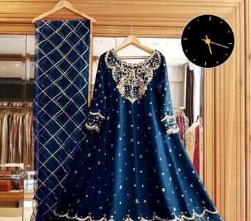 3 Pcs Women’s Stitched Silk Embroidered Gown Suit