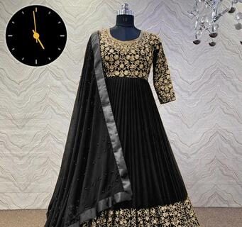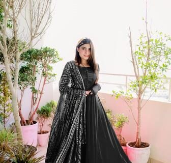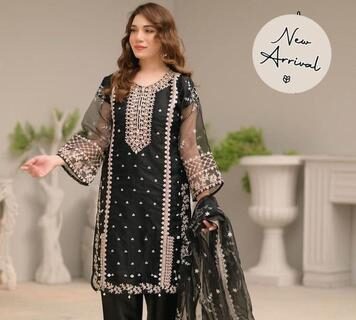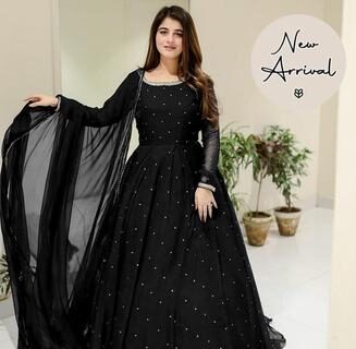 Elegant Black Embroidered Chiffon Maxi Suit with Dupatta and Trouser – 3 Pcs Set