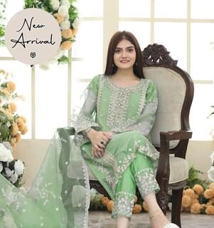 3 Pcs Women’s Stitched Chiffon Embroidered Maxi