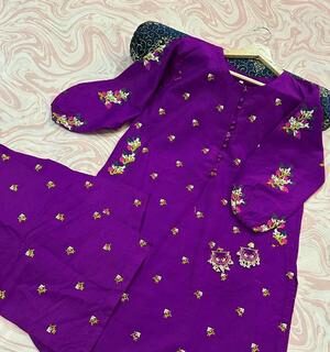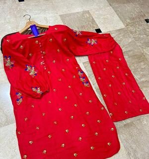 2 Pcs Women’s Stitched Linen Embroidered Shirt And Trouser