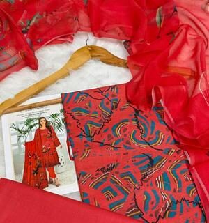 3 Pcs Women’s Unstitched Chikankari Embroidered Suit
