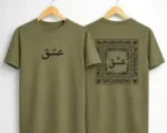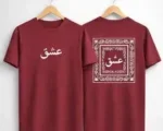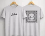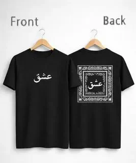 Front Graphic: Minimalist white or black Arabic calligraphy of the word “Ishq” positioned on the chest. Back Graphic: A large, intricate bandana-style border framing the same “Ishq” calligraphy in the center. Aesthetic: A fusion of cultural heritage and contemporary urban style.