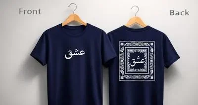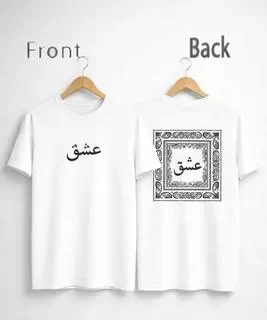 Front Graphic: Minimalist white or black Arabic calligraphy of the word “Ishq” positioned on the chest. Back Graphic: A large, intricate bandana-style border framing the same “Ishq” calligraphy in the center. Aesthetic: A fusion of cultural heritage and contemporary urban style.