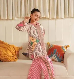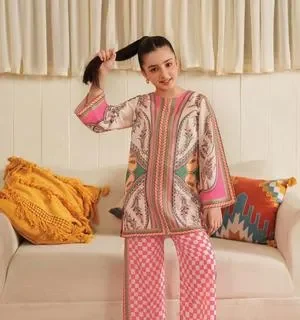 Front Back Digital Painted ZiqZaq Lining Shirt With Box Digital Printed Flapper Kids 2Pcs