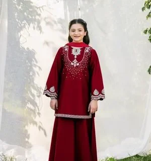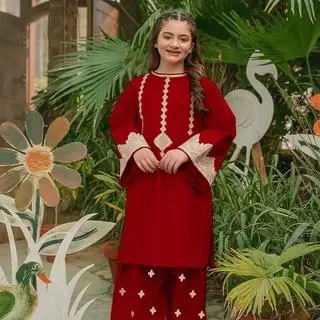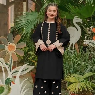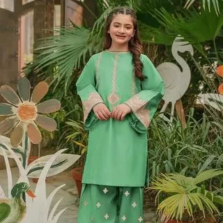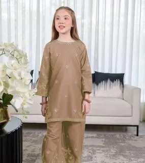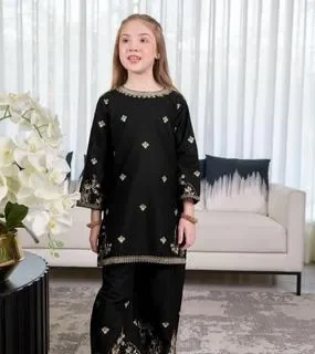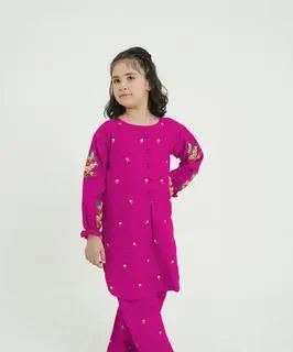 2Pcs Front Embroidered Shirt With Embroidered Flapper Kids 2Pcs