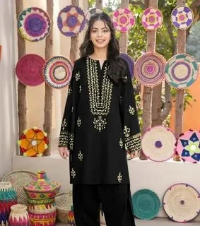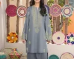 2Pcs Front Neckline, Sleeves Embroidered Shirt With Emb Trouser Kids 2Pcs