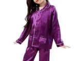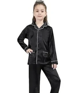 Kaaj Button Piping Work Kids Night Wear Silk Kids 2Pcs