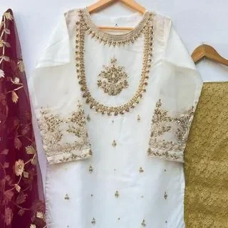 Handwork And Embroidery Shirt With Emb Dupatta And Maysoori Trouser Kids 3piece
