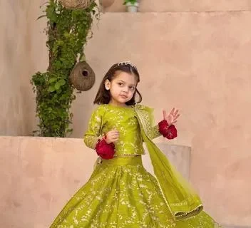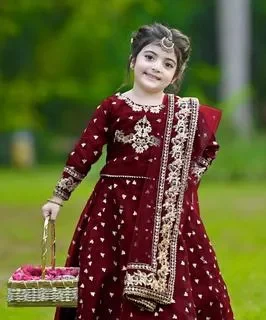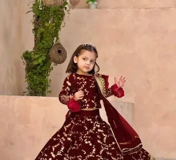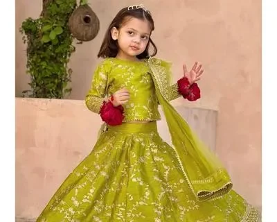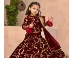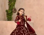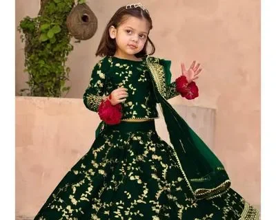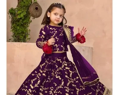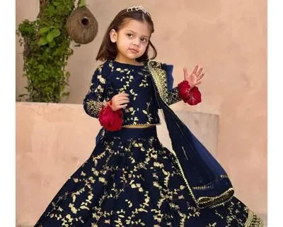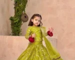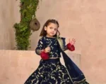 3Pcs Front Embroidered Top With Embroidered Skirt And Four Side Emb Dupatta Kids 3Pcs