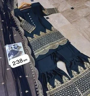 New Arrival 3pcs Sequence ? Sequence Embroidery Shirt With Sequence Embroidered Long Flair Garara With Dupatta 3Pcs Size Mesurement Chest Size 20 / 21 Shirt Length 36/37 Shirt Stuff Shalmose Silk Sequence Garara Length 38 Stuff Shalmose Silk Sequence Dupatta Size 2.5 Yards Stuff Chiffon