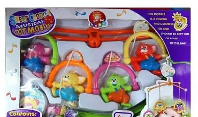 This baby musical crib is the perfect addition to any nursery in Pakistan, designed to entertain and soothe your little one with its charming, colorful characters and soothing melodies. Made from premium quality, durable plastic, it’s built to withstand daily use while remaining stylish and safe for your child. The multicolor design with vibrant animals and arches captures attention and stimulates visual development, making it ideal for babies aged 0 to 24 months. Its wind-up mechanism ensures hours of musical fun without needing batteries, and the sturdy construction keeps it safe for your child’s active play.