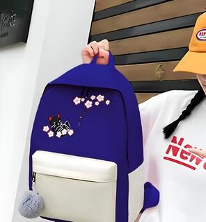 This vibrant blue and cream backpack is the perfect blend of fun and function for Pakistani students and young professionals. Designed with a cute black cat and cherry blossom motif, it adds a playful touch to your daily routine while remaining practical for college, university, or casual outings. The durable parachute material ensures long-lasting use, even with heavy loads, making it ideal for the busy lifestyle of modern Pakistan.