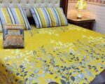 Upgrade your bedroom instantly with this stunning 3-piece cotton mix printed double bedsheets set. Perfect for Pakistani homes, this stylish design adds elegance while remaining comfortable for daily use. The vibrant yellow base with delicate gray and white floral patterns brings warmth and freshness to any room, making it ideal for both casual living and special occasions like weddings or family gatherings.