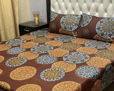 Upgrade your bedroom instantly with this stunning 3-piece crystal cotton printed double bedsheet set. Designed for Pakistani homes, it combines elegance with comfort, making it ideal for daily use or special occasions like weddings and Eid. The rich brown base with intricate golden and silver mandala patterns adds a luxurious touch to any room, while the durable crystal cotton fabric ensures long-lasting beauty and easy maintenance.