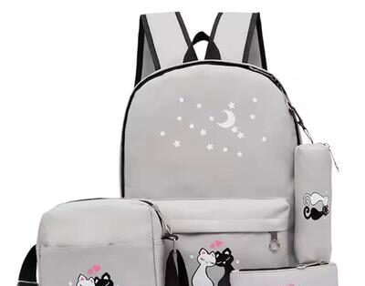 Made from high-quality, durable nylon, this set is built to last through daily wear and tear. The material is lightweight yet strong, making it comfortable to carry for long periods. The set includes a main backpack, a crossbody bag, a small pouch, and a keychain, all matching in design for a coordinated look. Perfect for keeping your books, laptop, or personal items organized and secure.