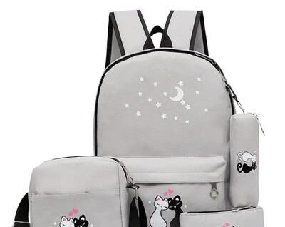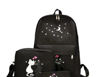 Looking for a stylish and practical backpack set for your daily needs? This 4-piece multipurpose backpack set is perfect for students, office-goers, or anyone who wants to carry their essentials with charm and comfort. Designed with a cute cat and moon motif, it adds a touch of personality to your look while keeping your belongings organized and secure.