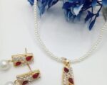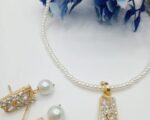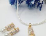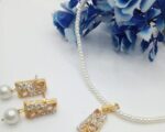 The necklace and matching earrings are crafted with premium quality materials, ensuring long-lasting wear without tarnishing. The design is easy to wear and secure, making it suitable for both casual and formal settings. The set features a classic pendant and stud earrings, both adorned with sparkling stones and elegant pearls, creating a harmonious look. The gold plating resists fading, and the stones are securely set for everyday use. The necklace measures 28 cm, offering a free size fit for most necklines.