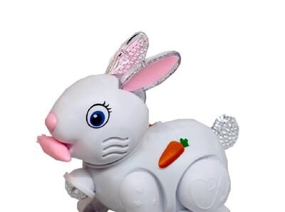 This adorable electric rabbit toy is the perfect gift for your little one’s playtime, designed to captivate and entertain with its charming design and engaging features. Made from premium quality, durable plastic, it’s built to withstand the rough-and-tumble of active kids while maintaining its stylish look. The white rabbit, adorned with glittery pink ears and a cute carrot detail, is not just visually appealing but also safe for children aged 3 months and up. Its lightweight construction and smooth finish make it ideal for indoor play, and the no-battery-required design ensures hassle-free fun without the worry of power issues.