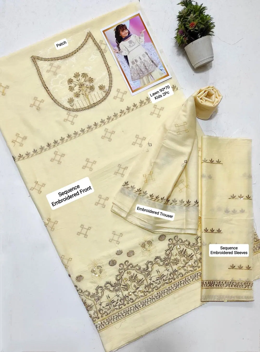 2 Pcs Girl’s Lawn Embroidered Unstitched Suit
