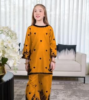 Perfect for Pakistani girls aged 7-12, this 2-piece embroidered kurta and trouser set is designed for comfort and style during school, parties, or daily wear. The mustard color adds a warm, festive touch that suits local tastes and seasonal events. Made from soft premium cotton, it’s breathable, gentle on sensitive skin, and built to last through active play and daily use.