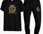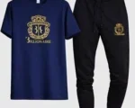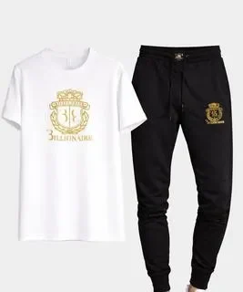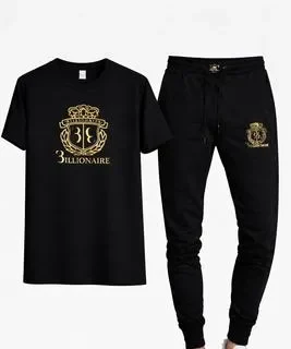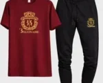 Billionaire Crest Track Set – Maroon Premium maroon T-shirt with gold crest logo paired with black slim-fit jogger. Soft, breathable fabric for stylish and comfortable everyday wear. ? Billionaire Crest Track Set – Navy Blue Navy blue T-shirt featuring luxury gold print with black jogger. Modern slim-fit design perfect for casual and sporty look. ? Billionaire Crest Track Set – Black Classic black
