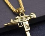Made with durable, golden-toned metal, this necklace is crafted to resist daily wear and tear. The elegant slim design ensures it’s light and comfortable to wear for hours. Its unique gun-shaped pendant is not just eye-catching but also a symbol of strength and individuality. Perfect for those who appreciate edgy, modern fashion with a touch of toughness.