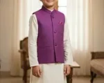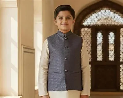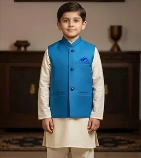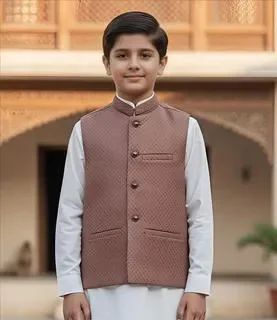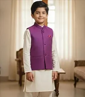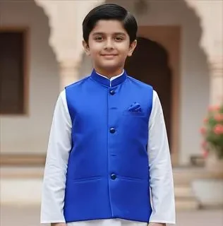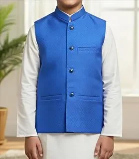 Stylish and comfortable waistcoat designed especially for kids , Made from soft, breathable fabric for all-day. comfort Sleeveless design allows easy movement, Front button closure for a smart and neat look Perfect for parties, weddings, and festive occasions Easy to pair with shirts, kurtas, or trousers