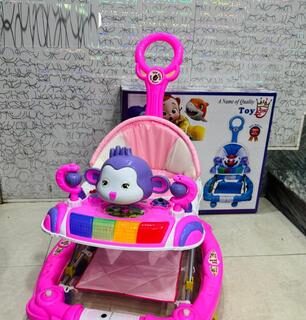 This tricycle is crafted with strong, durable plastic and a comfortable fiber seat that supports your child’s posture. The sturdy frame and smooth-rolling wheels ensure a safe and enjoyable ride. The added support handles on both sides make it easy for parents to push or guide their child. The lights and music feature add extra fun, making every ride an adventure. Designed for ages 1-3, it’s the best price in Pakistan for a long-lasting, high-quality toy.