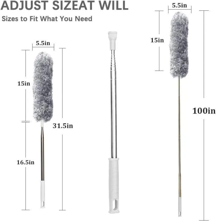 Extendable Microfiber Duster with Long Telescopic Handle Long Reach, Bendable Head, Washable Fan & Ceiling Cleaner