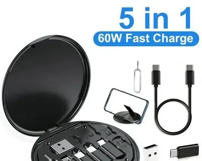 PD 60W Multifunctional USB Type C Data Cable Set Fast Charging For IPhone Xiaomi Charger Storage Box Adapter Card Pin Travel Box Mini Multi-Functional Fast Charging Data Cable Set for Apple, Android, Type C Charging with Retrieve Card Pin,Round Storage Box,Compact and Portable USB Data Cable Storage Box Travel Cable Set Small Round Multi-Functional Travel Cable Kit which can help to make all combi