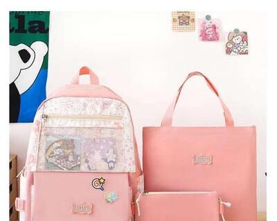 – Four-piece set includes backpack, tote bag, pencil case, and small pouch