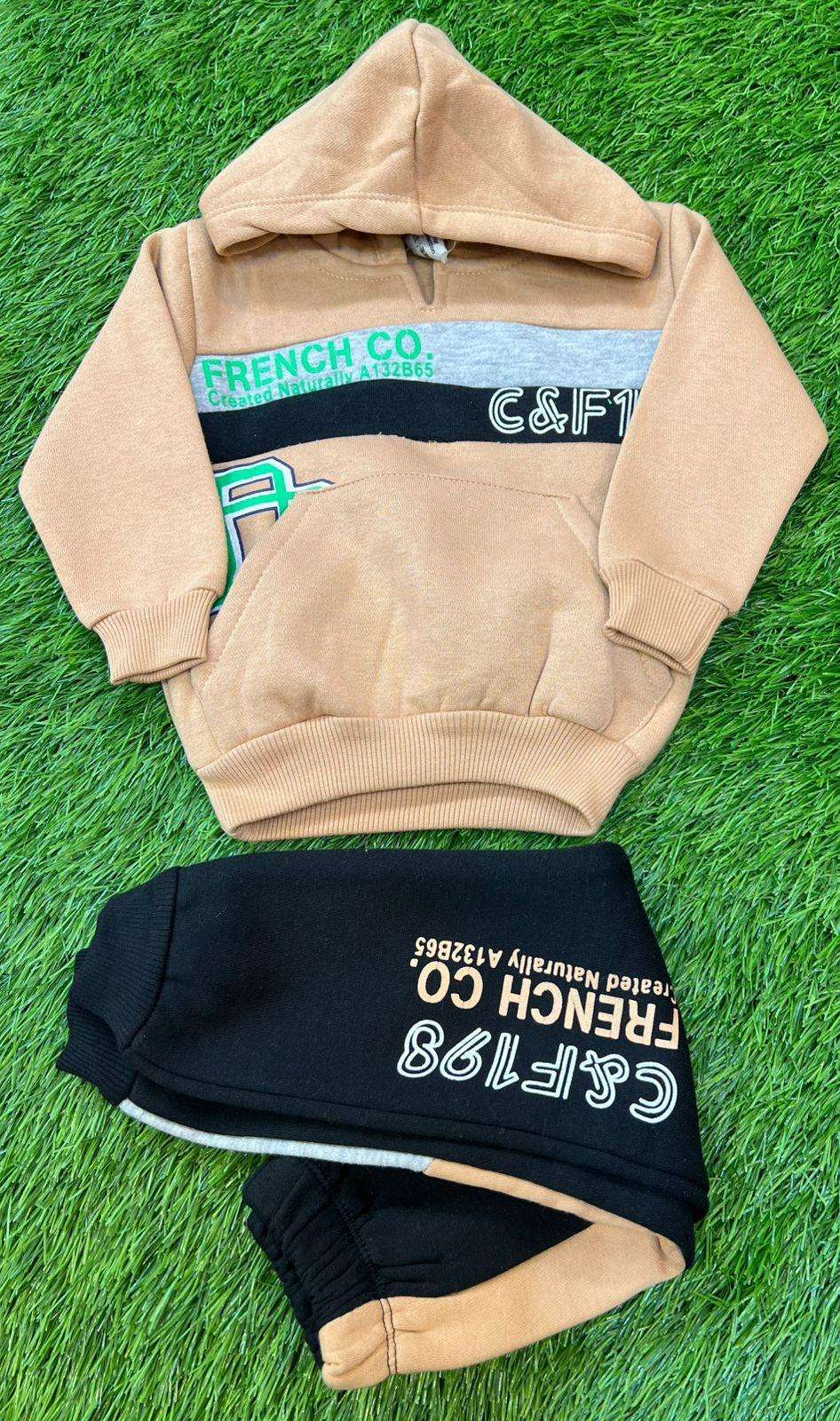 Stylish Baby Boy Grey Printed Fleece Tracksuit – 1 Pcs