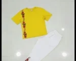 – Stylish floral embroidery with red roses on shirt and trousers