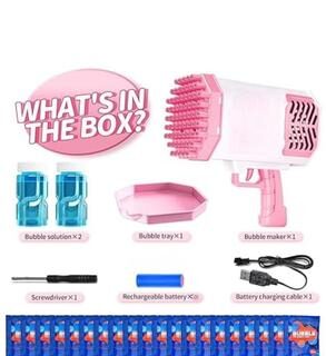 This bubble gun is made from high-grade plastic that’s both lightweight and tough, ensuring it lasts through countless bubble-blowing sessions. The sleek design comes in trendy colors like pink, blue, and grey, making it a fashionable addition to any child’s toy collection. With its rechargeable feature and built-in lights, it’s not just fun—it’s a new arrival that stands out from ordinary toys.