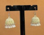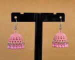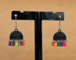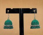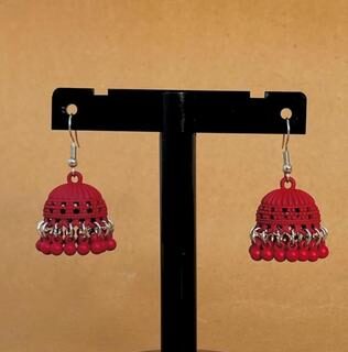The jhumkas are made from high-grade stainless steel, ensuring they resist tarnishing and stay shiny even with regular use. Their lightweight design makes them comfortable to wear for hours, while the vibrant red color adds a bold, festive look. The hanging beads are securely attached, so they won’t fall off or break easily. These earrings are a new arrival, perfect for those looking for elegant, affordable bridal wear or everyday accessories.