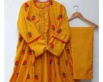 Elevate your style with this exquisite Women’s Stitched Suit crafted from luxurious silk, featuring intricate embroidery. The elegant round neck and plain cotton trouser make it perfect for any occasion. Complete with a plain inner frock, this 3-piece set is available in vibrant yellow and multiple sizes. Embrace comfort and sophistication effortlessly!