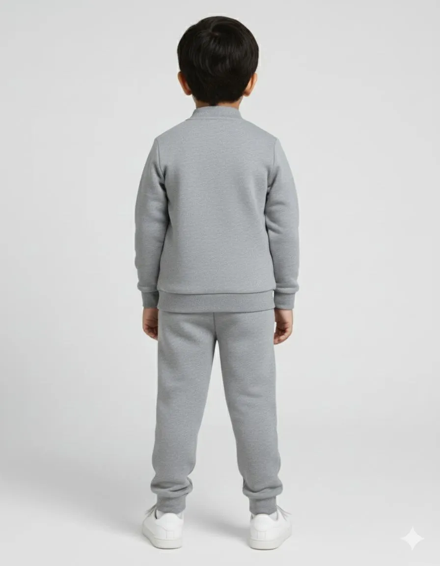 2 Pcs Boy’s Fleece Plain Zipper Tracksuit